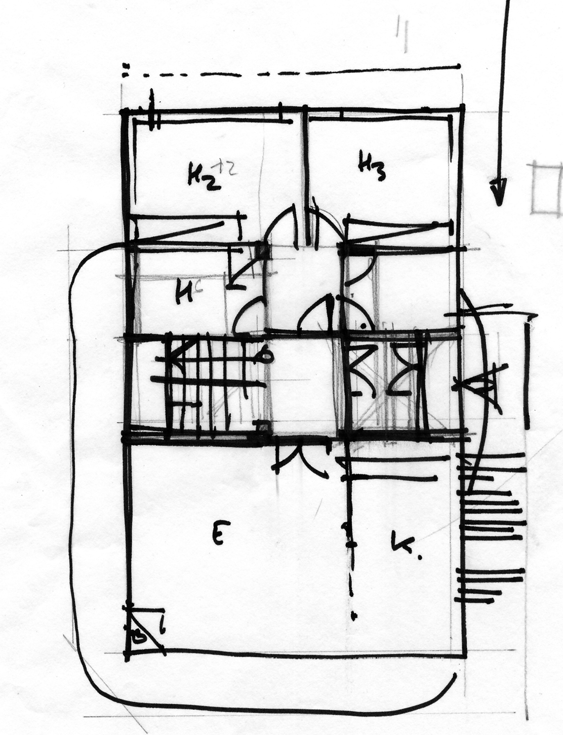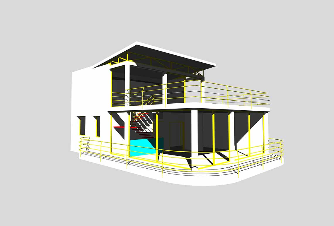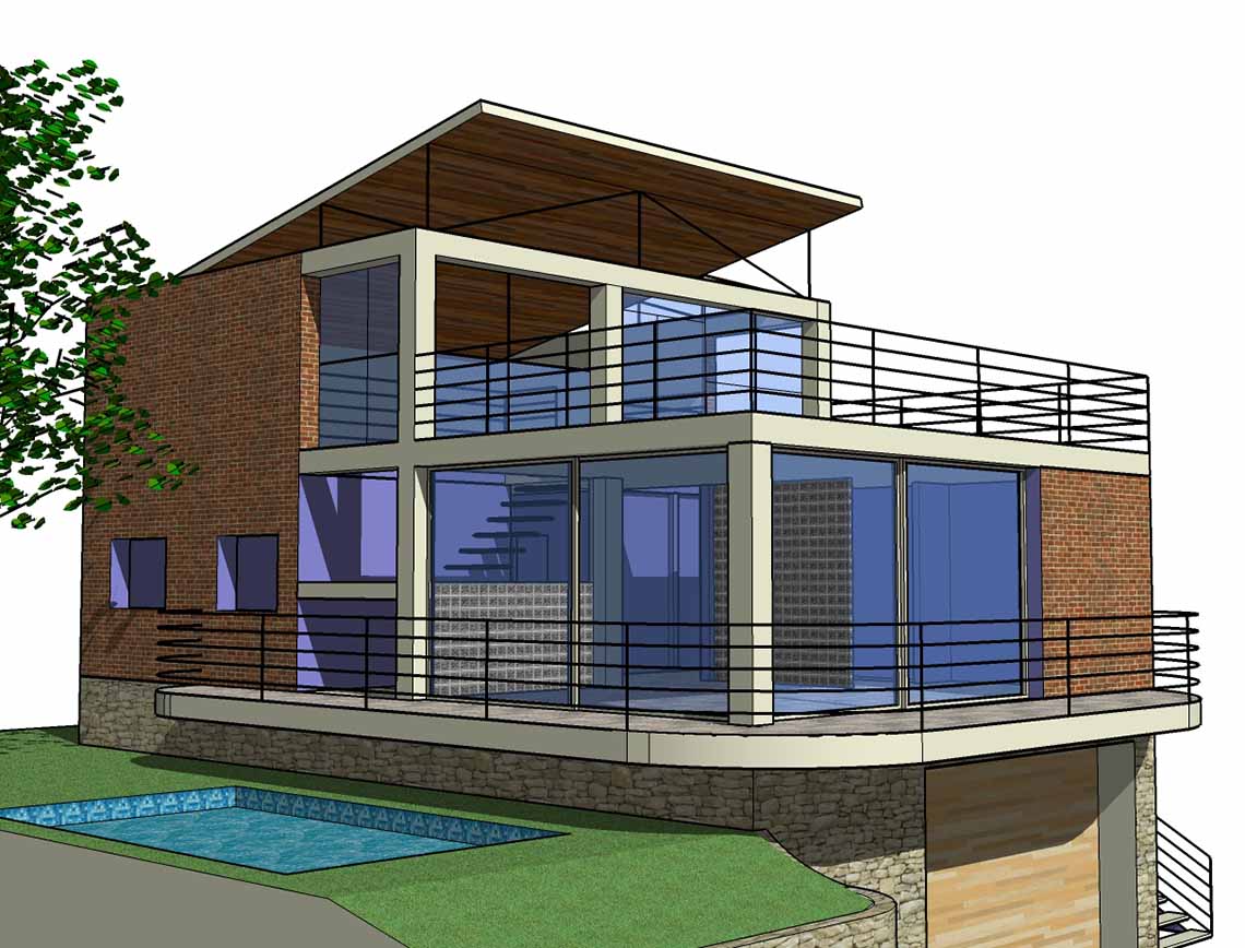 Este es un ejemplo de desarrollo de Proyecto en este caso de vivienda unifamiliar aislada; con la particularidad que la misma vino condicionada por una preexistencia de planta semisotano, y que definió de partida una forma rectangular en planta baja, y por ende la exigencia de una estructura lo más ligera posible.